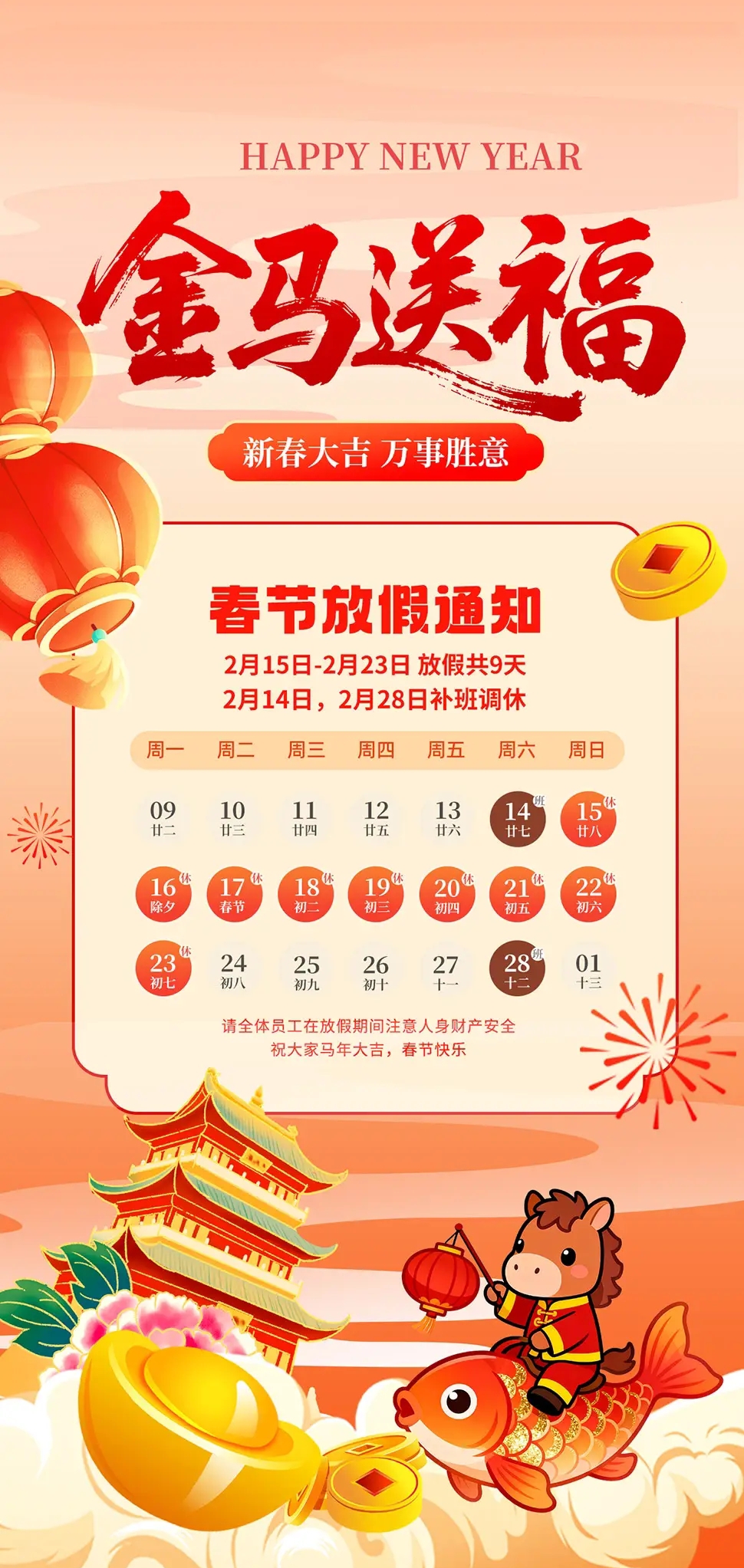 根据《国务院办公厅关于2026年部分节假日安排的通知》,结合我司实际,现将2026年春节放假相关工作事宜通知如下: